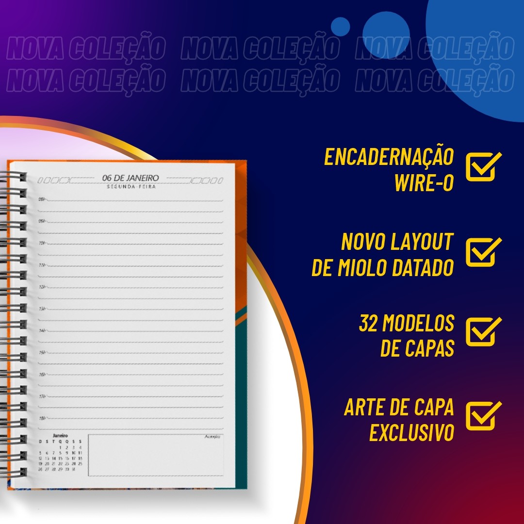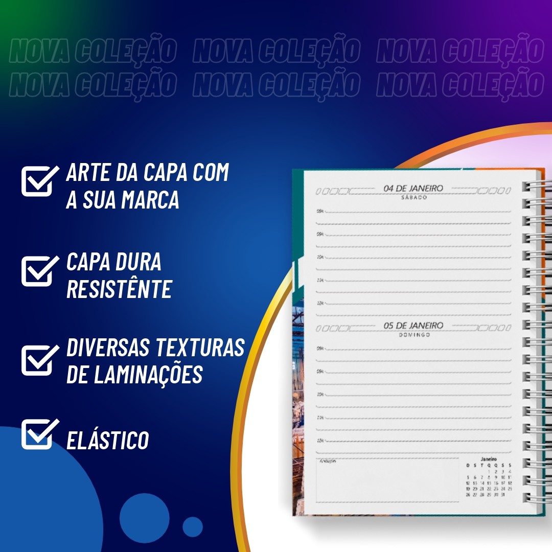 - Esta agenda possui calendário de planejamento 2025 e 2026
