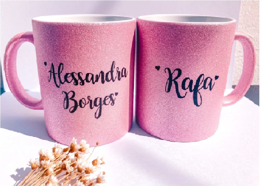 CANECA GLITTER ROSA DE PORCELANA PERSONALIZADA