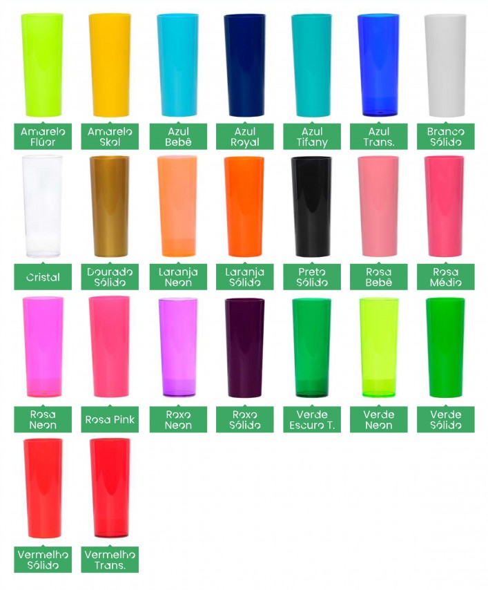 • Material: Copo long drink de 350ml de cor leitoso ou transparente