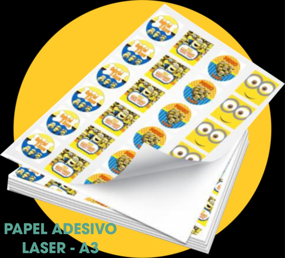 IMPRESSÃO PAPEL ADESIVO BRILHO - A3 COLORIDA - LASER